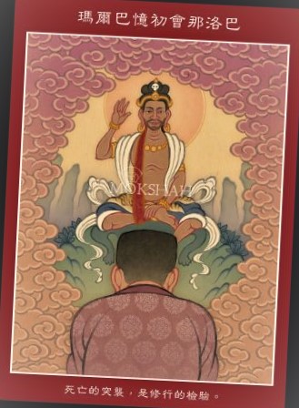 解脫教團群主鍾同學,前一陣子聽到一位退休的同事突然發生車禍而過世,有點震驚,在要參加她告別式的前一天,於定例的抽牌上問了這個問題,得到祖師的諭示為「瑪爾巴初會那洛巴」。
