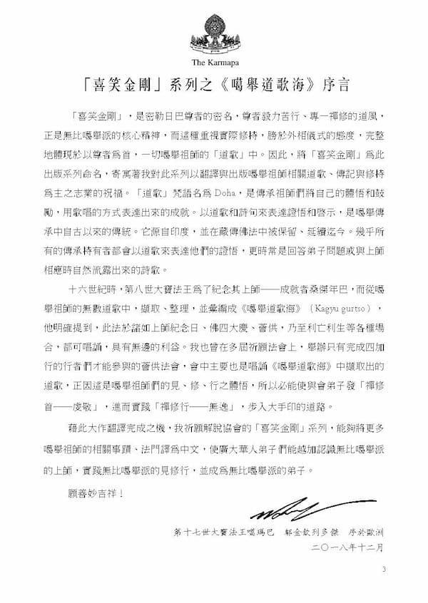 這也是喜笑金剛系列出版的背景與目的:我們計畫以噶舉派骨幹—方便道與解脫道做為主軸,將傳承中與此二道有關的重要資料用現代排版和語言的方式翻譯,並循序漸進建立定期修持的法務,使我們能夠更加認識噶舉派的上師事蹟、價值精神、生活態度,以及其所體現出的儀式法門。